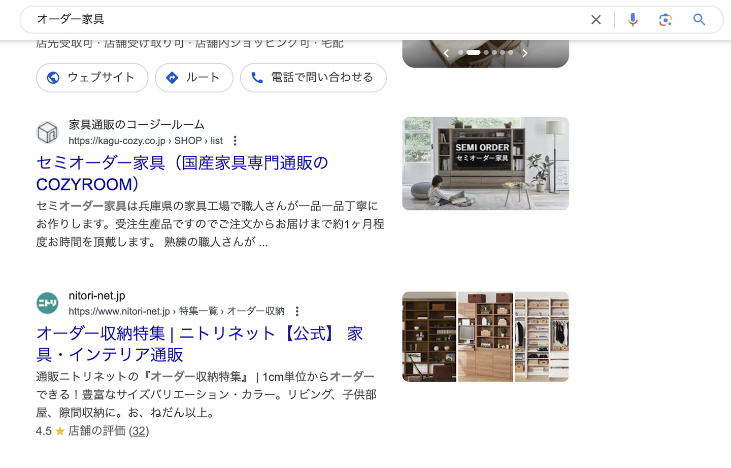 もしそのお客様のサイトが「オーダー家具」という検索結果の上位に出てきたとしたら、売り上げが上がりそうですよね?