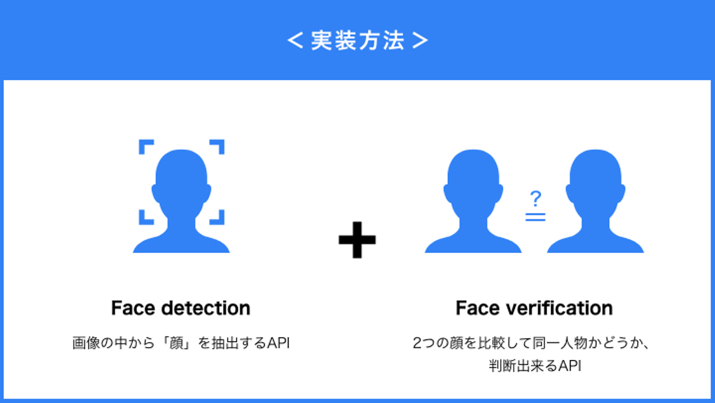 Microsoft Azure が提供している、「Face detection」と「Face verification」2つのAPIを使用して本人認証システムを再現する事が可能。