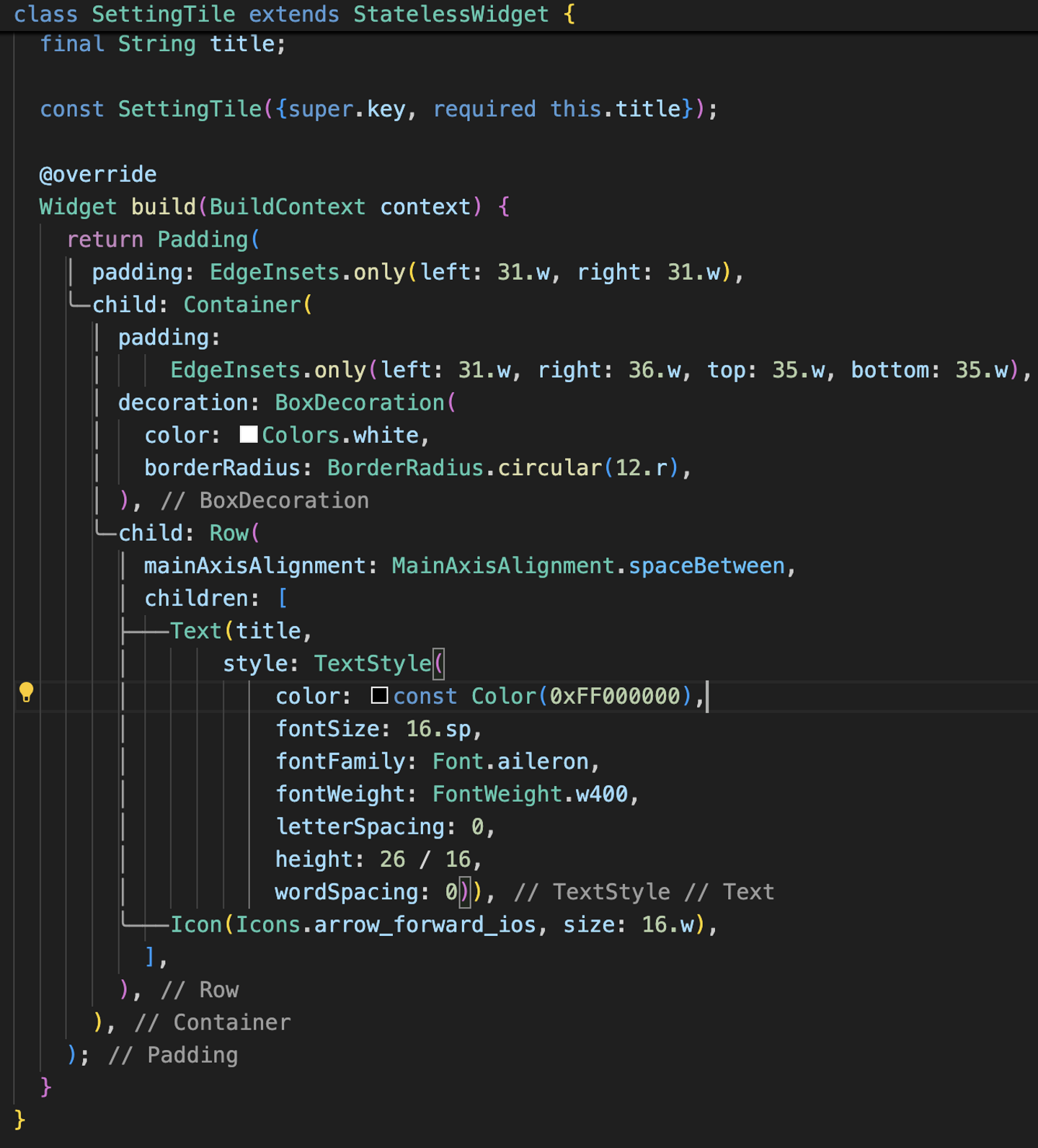 コードを実装した結果、以下のような item ウィジェットのコードが完成しました。