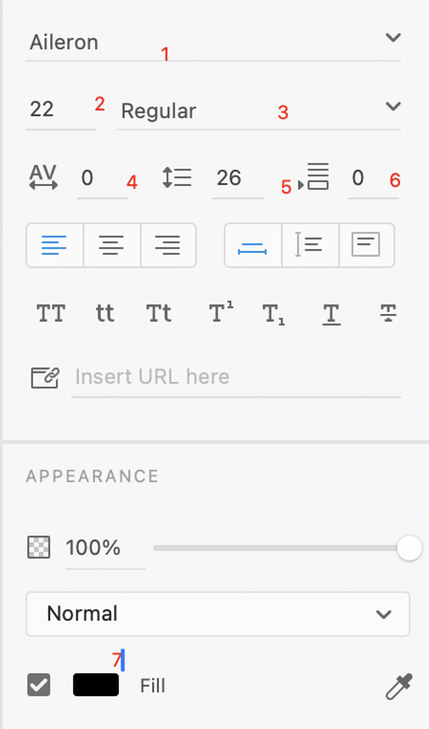 上部の2つのテキストについては、デザインをしっかり確認して、前述の通りにすべてのパラメータ(フォント、サイズ、間隔など)を正確に反映させてくださいね。