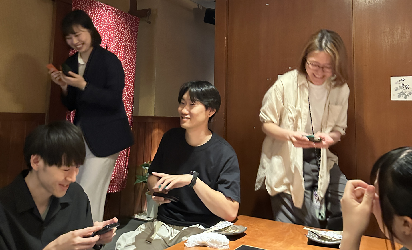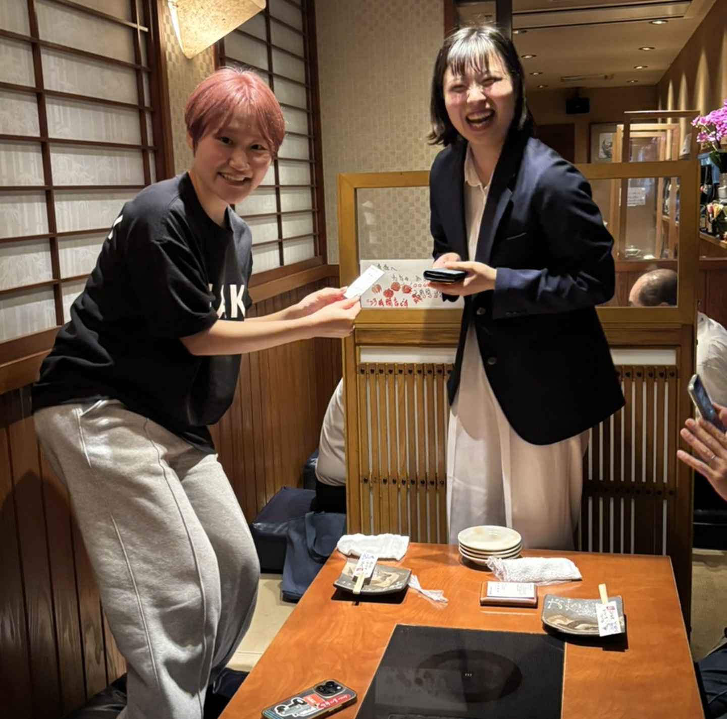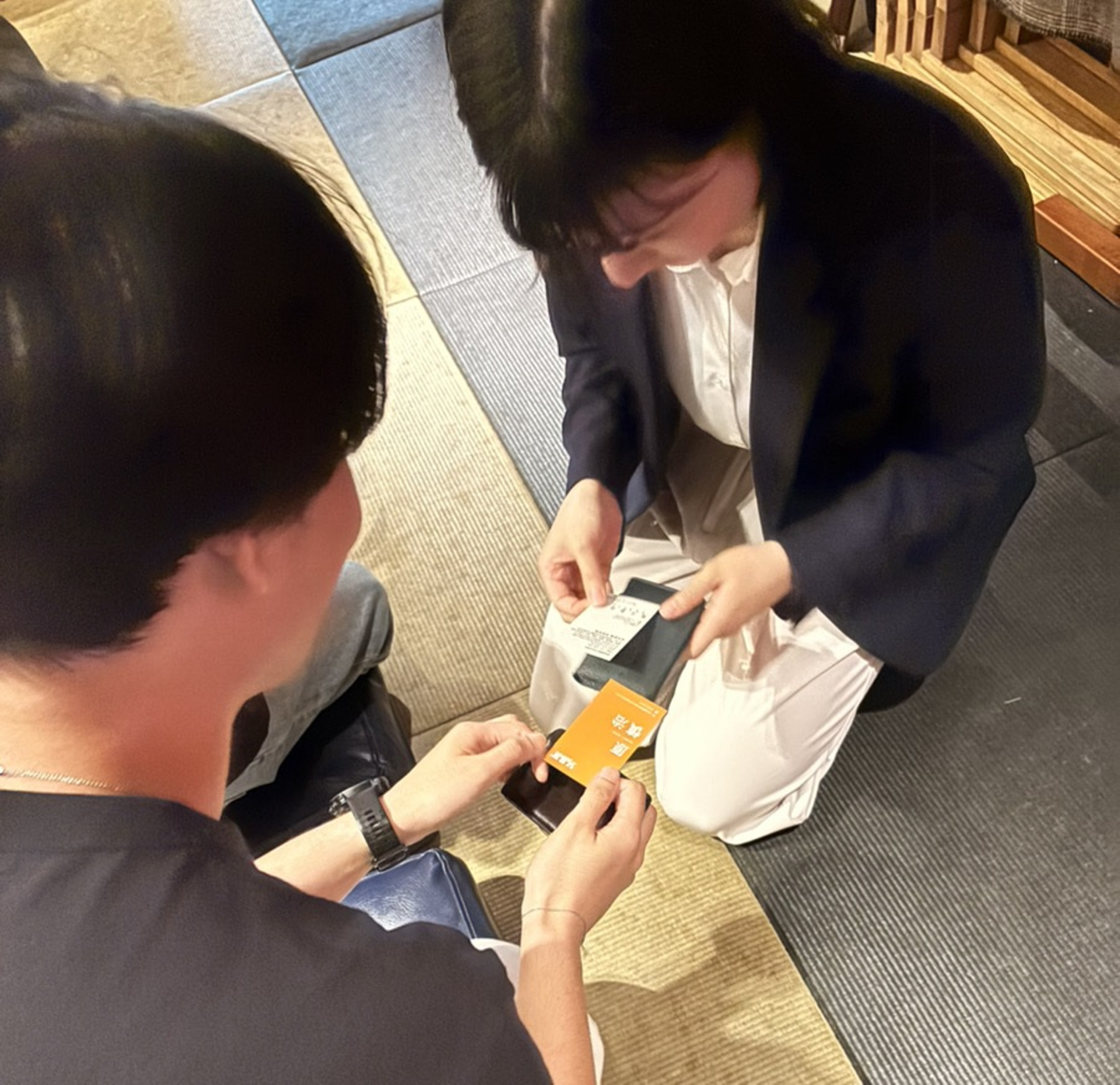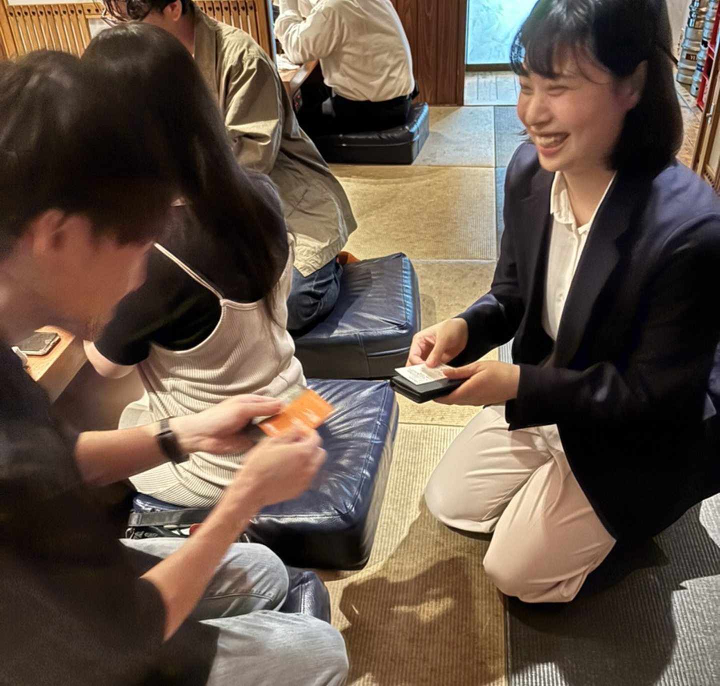 お店に向かう前に社内で「みんな名刺ちゃんと持った!?」としっかり確認。