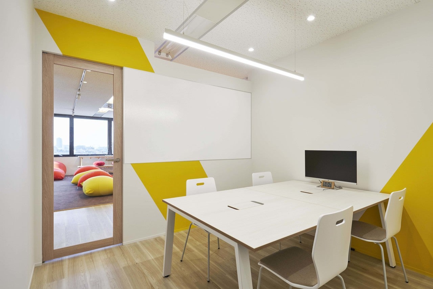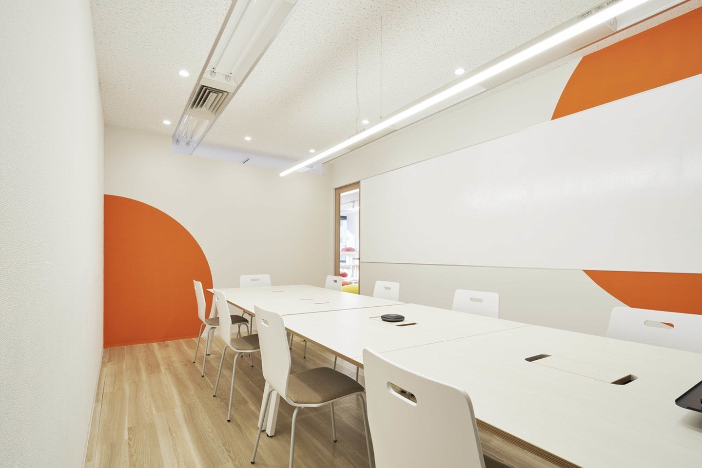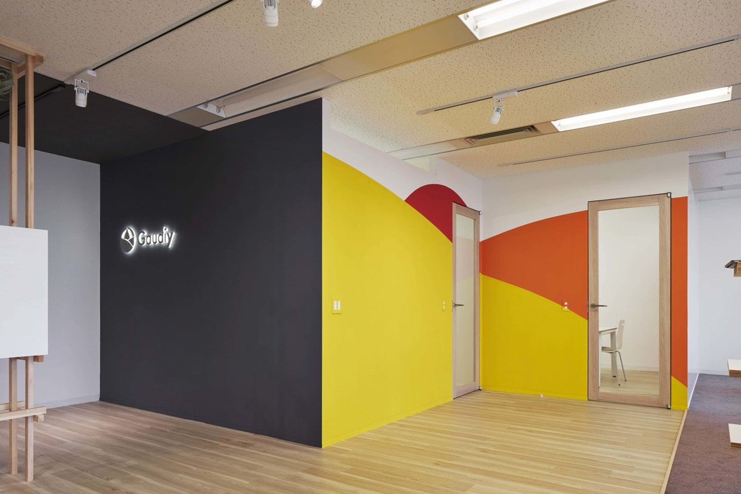エントランス奥には、Gaudiyカラーの模様が施されたミーティングルームがあります。
