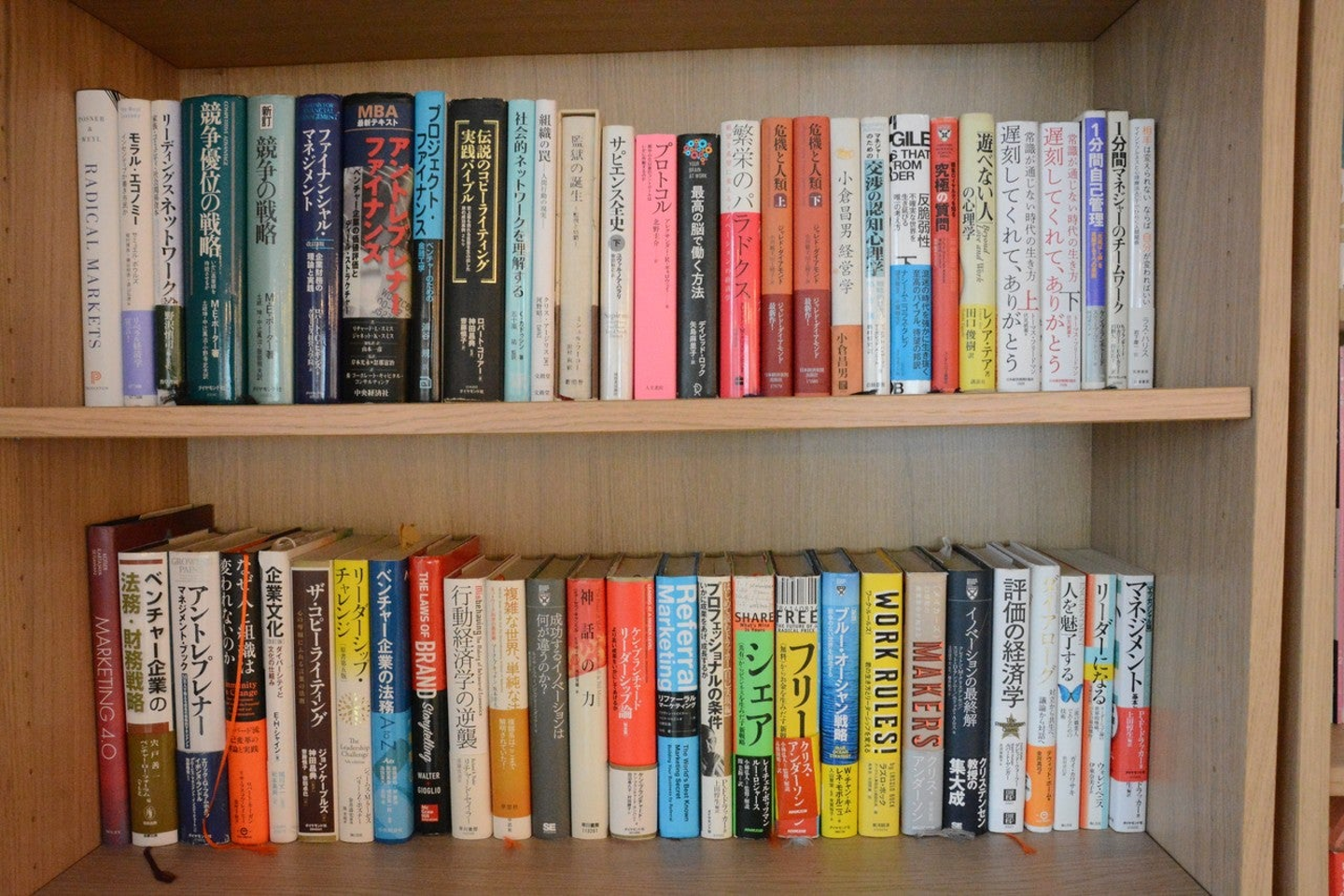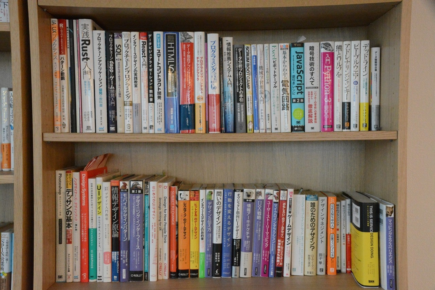 Gaudiyでは「新しいことに取り組みたい」という成長志向が強い人が集まっています。大きめの本棚には様々な分野の書籍を用意してあり、必要な書籍はSlackにリンクを貼れば無制限で購入でき、メンバーの成長を支援しています。