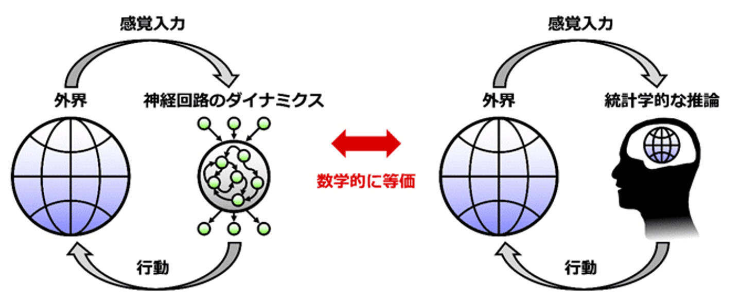 図1:神経回路のダイナミクスとベイズ推論の等価性の概