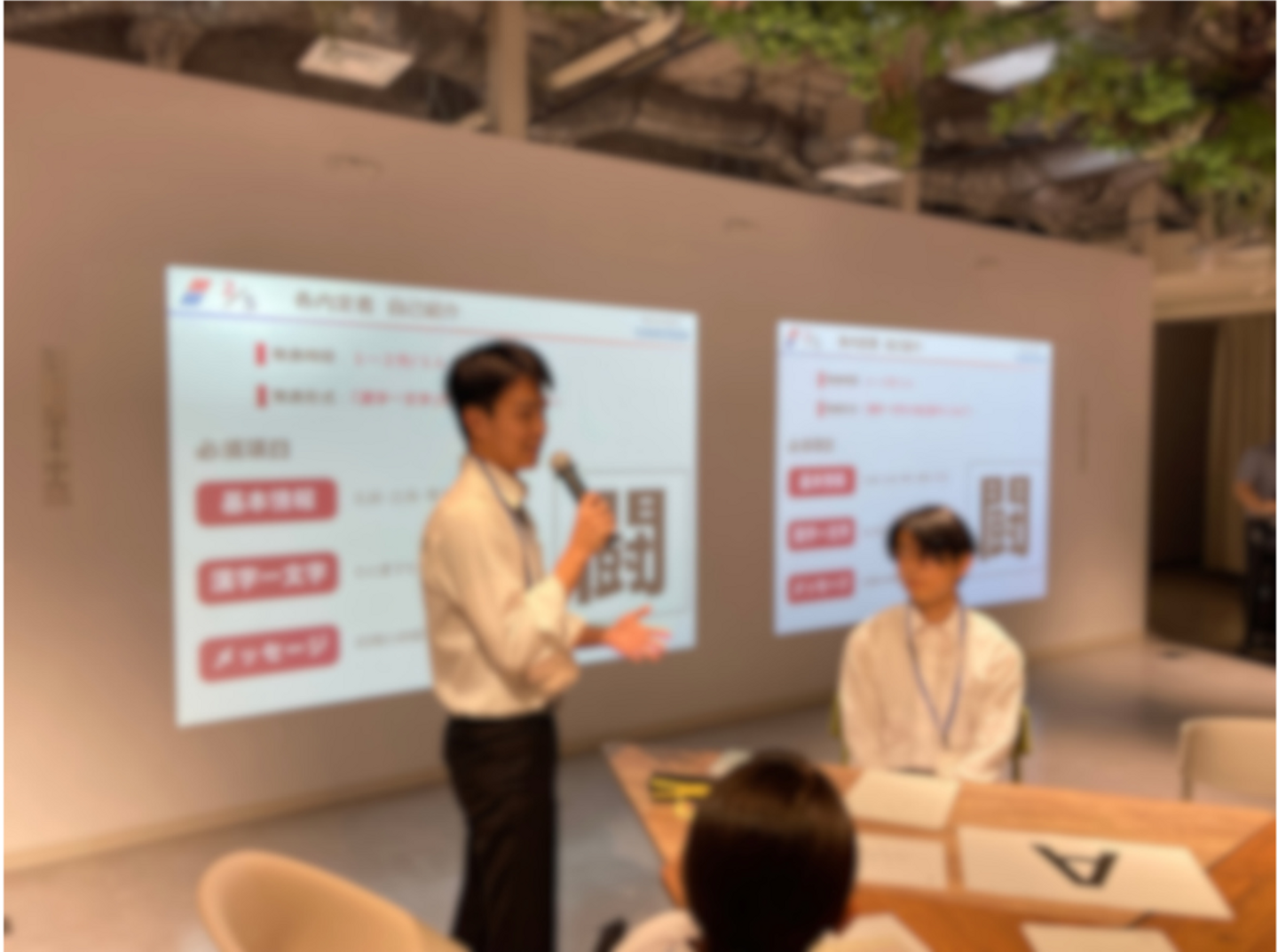みんなの前で「名前、学部、趣味、選んだ漢字」を発表!