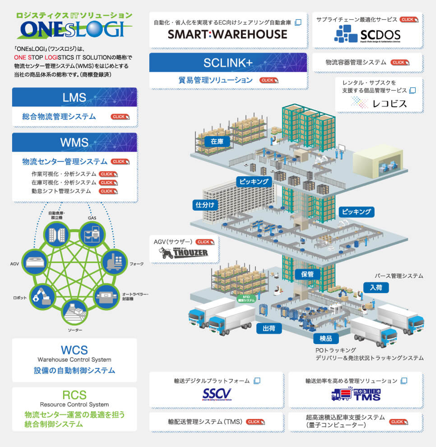 ロジスティードソリューションズは自社開発物流システムの「ONEsLOGI」をはじめ、数多くのロジスティクスおよびサプライチェーンにおける業務効率化・生産性改善・品質向上を目指したソリューションを取り揃えております。