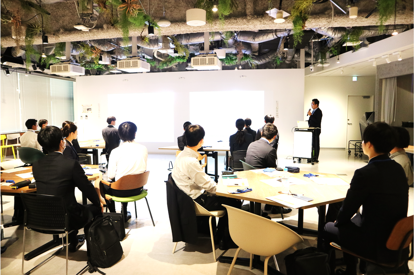 各地から集まった学生へ感謝とともに、内定式開催の目的やタイムテーブルなどを共有します。