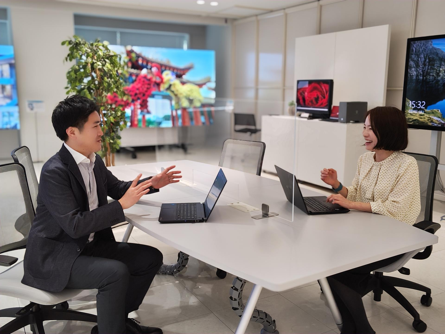 今回紹介するのは、広報グループの中にある商品広報チーム(社外広報)で活躍する2名の社員。いずれも他事業部からキャリアをスタートし、そこでの経験を携え広報の世界に。これまでの自身のキャリア、シャープ広報の魅力について語ってもらいました。