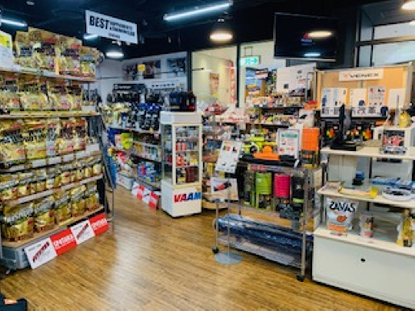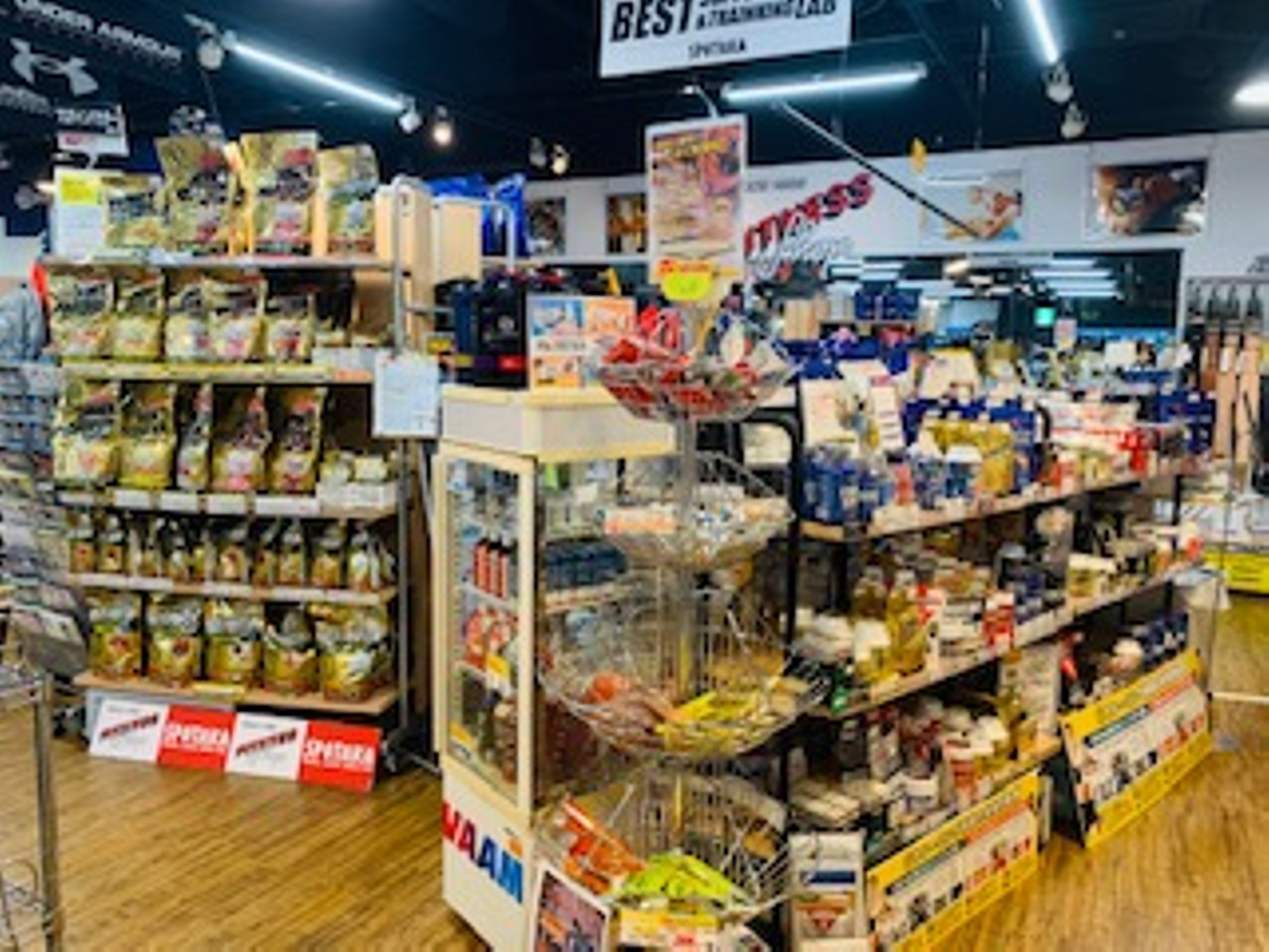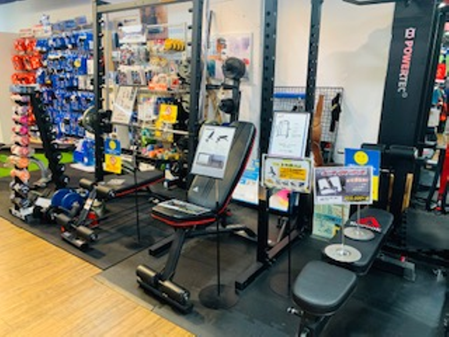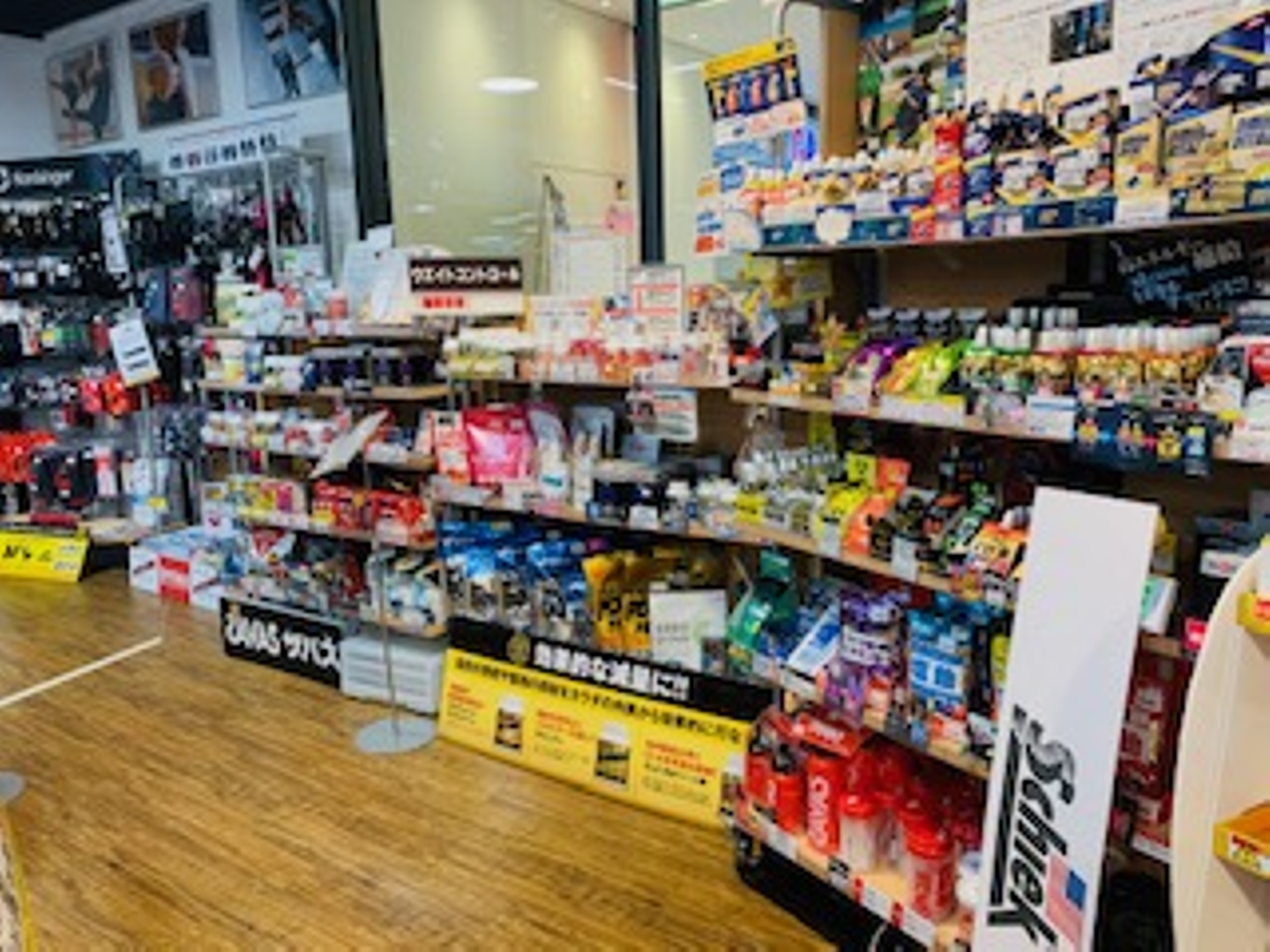 そこでスポタカの中には、たくさんのサプリメントやプロテイン、トレーニング器具、ストレッチグッズなどを取り扱うコーナーがございます!