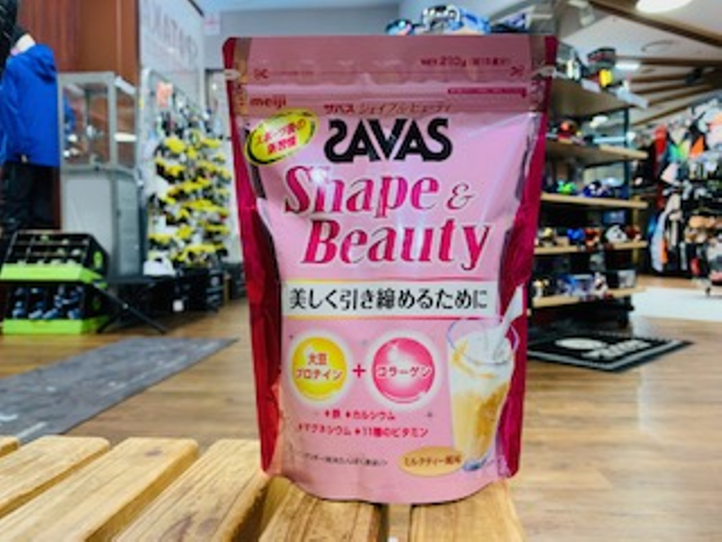 まずは女性にオススメのプロテイン、ザバスより『Shape&Beauty ミルクティー風味』です。