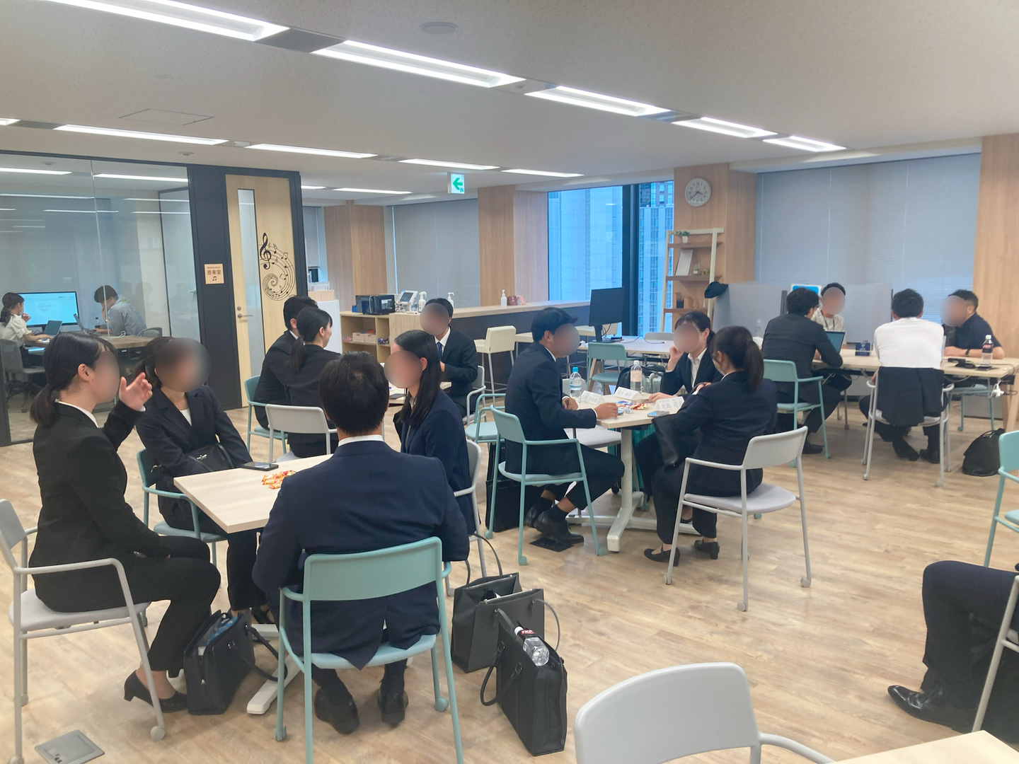 内定式の終了後には、東京本社に移動してオフィスツアーを行ったり、ラウンジで内定者同士の懇親の時間を設けました。