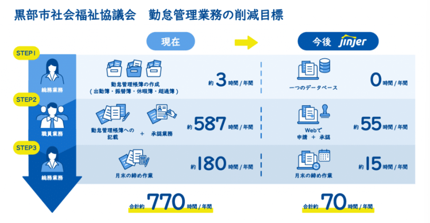 ※参考: 社会福祉法人 黒部市社会福祉協議会とjinjerによる「福祉分野におけるICTを活用した業務効率改善(ふくしDX)の共同研究プロジェクト」開始