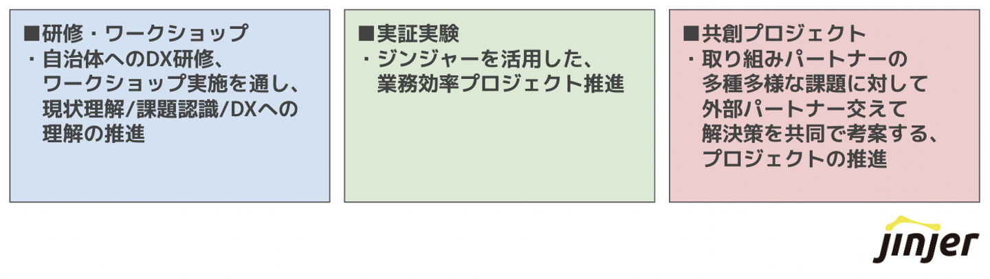 具体的には、世の中に存在する社会課題/地域課題に対し、さまざまな 社外パートナーと一緒に「ジンジャー」の知見やテクノロジーのチカラを活用して課題解決へ挑むプロジェクト と定義し、活動をおこなっています。