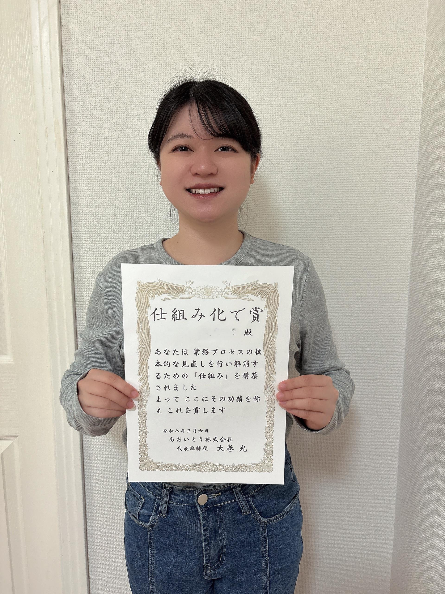 🏆 仕組み化で賞:なかはまれなさん(来年度入社予定)