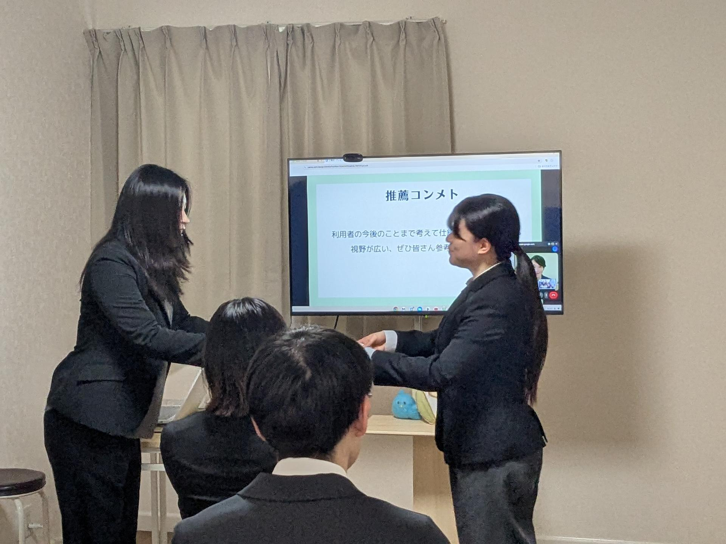 ▲多忙な代表、この日はオンライン参加。ITDXが進んでいるあおいとりならではの入職式です