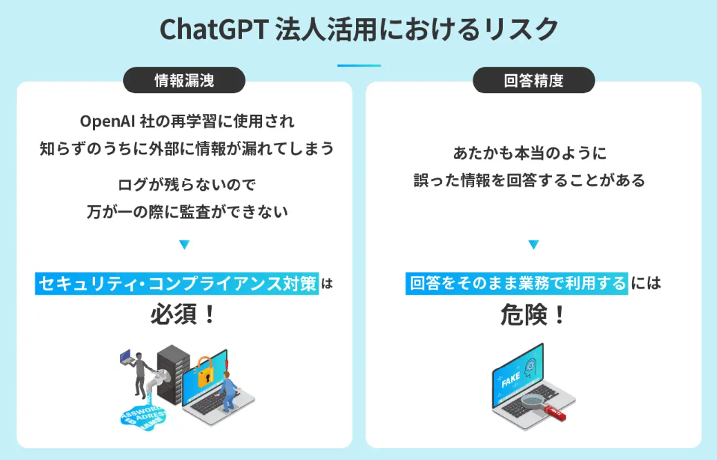 しかし、ChatGPTのビジネス利用においてはリスク・課題もまだまだ存在します。「NewtonX」ではそのリスクや課題を解決し、法人でも安心安全にChatGPTを利用できます。