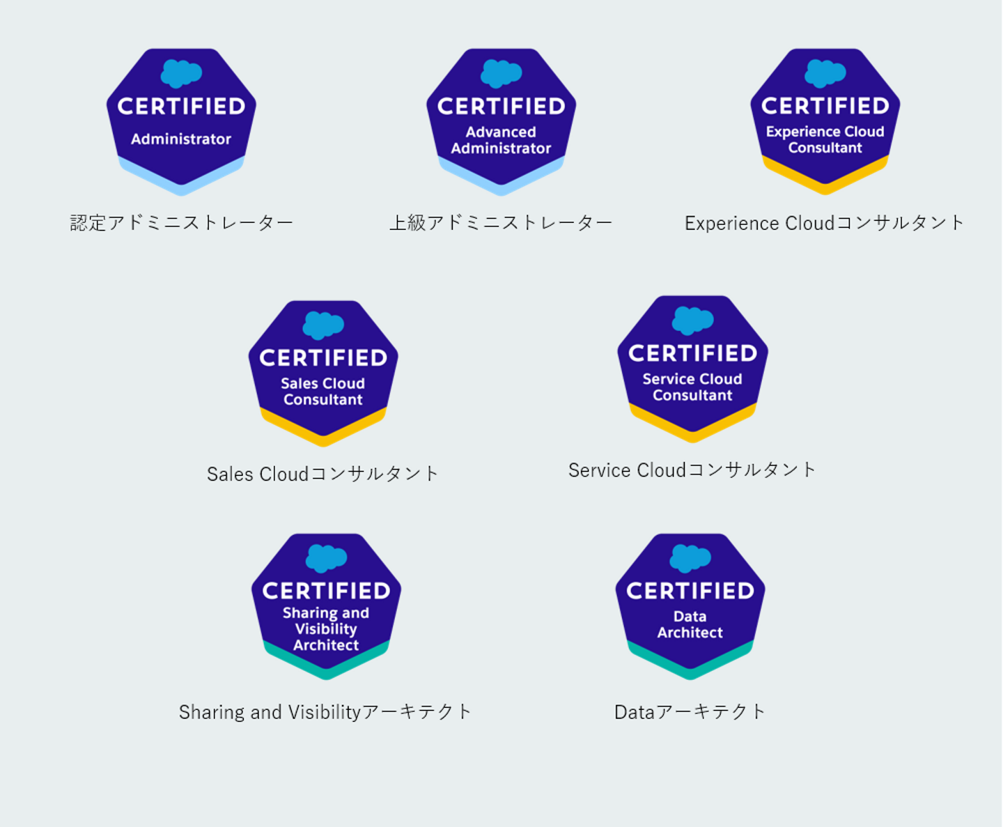 2024年2月時点でSalesforce関連の資格は7個保有しています。