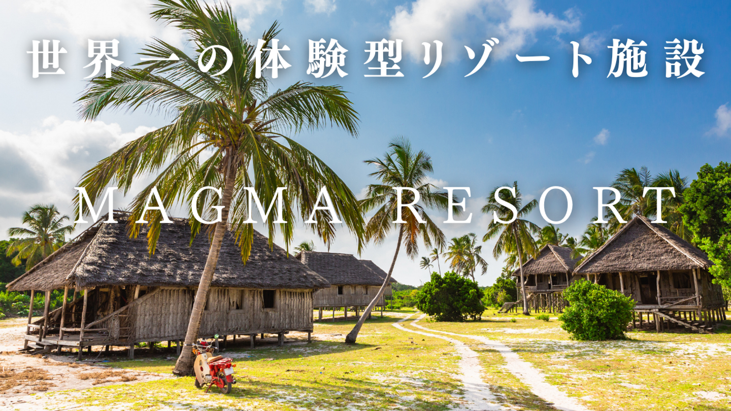 株式会社MAGMAにおける基幹事業。1日20個以上のアクティビティができる今までにないタイプの体験型リゾート施設。年間6シーズンに分かれ、100種類以上という圧倒的アクティビティ数。どこでもできる体験ではなく、日本地域の伝統文化を感じられる本格体験。過疎化の進む地域の埋もれてしまう伝統文化を掘り起こし、ワクワクと共に磨き上げる。そうしたその地域ならではの体験をゲストさんに提供する。