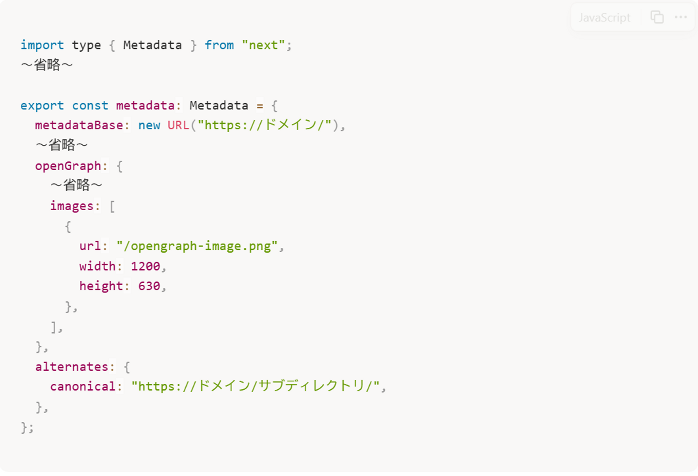 サブディレクトリにデプロイする時も metadataBase はサブディレクトリなしで指定しないと、パスが https://ドメイン/サブディレクトリ/サブディレクトリ/opengraph-image.png みたいな感じにサブディレクトリが2つ連なる形で出力されて表示されなくなってしまいます。layout.tsx に以下のようにサブディレクトリ無しのurlを metadataBase に指定します。