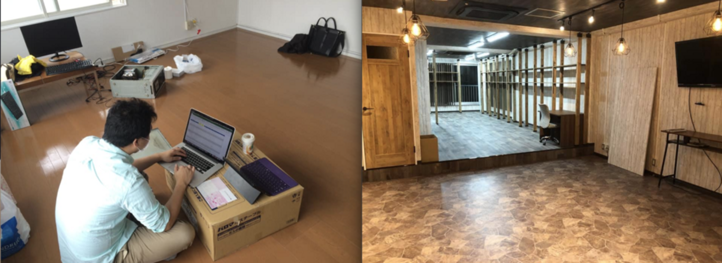 写真:これから大きくなるつもりの小規模企業例。オフィスの様子だけでこれだけ変容します(2年目⇒4年目)