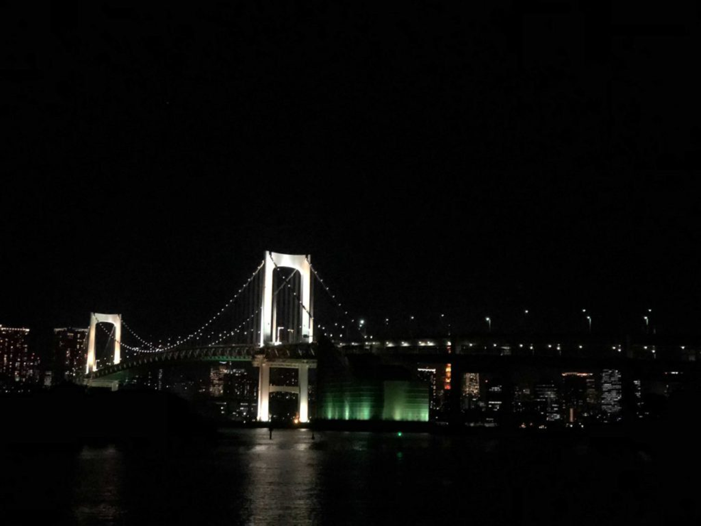 写真:屋形船に乗せてもらってとった写真。大都会東京レインボーブリッジ。小規模企業には眩しすぎるぜ!