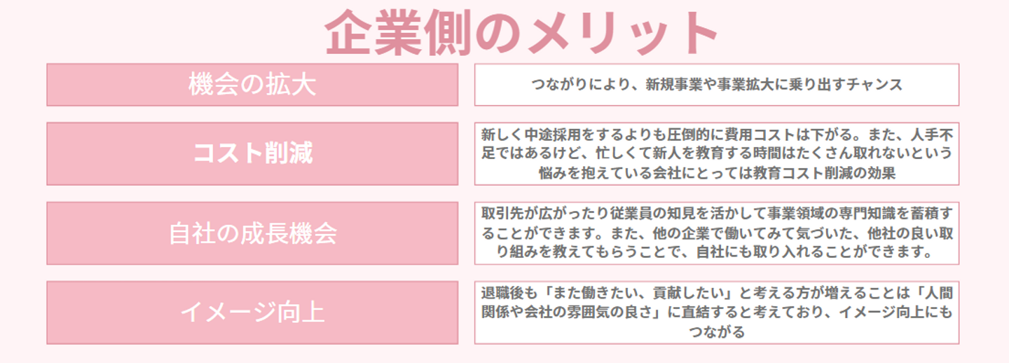 このように、アルムナイは会社にとっても元社員にとってもお互いレベルアップできる仕組みです!