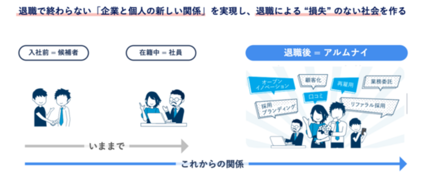 アルムナイとは、労働条件やビジネスフェーズが合わないことによる退職となった方を対象に、