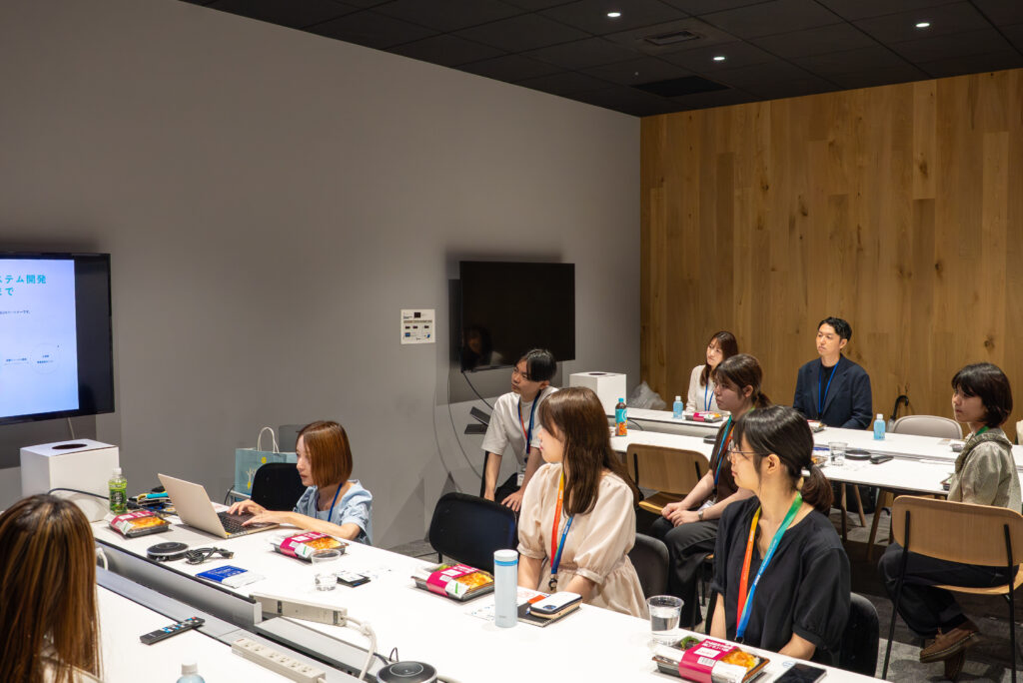 会場に到着後、まずは名刺交換をしながら挨拶を交わし、和やかな雰囲気で交流会がスタート。両社それぞれの事業やチームについて、スライドを使って紹介し合いました。
