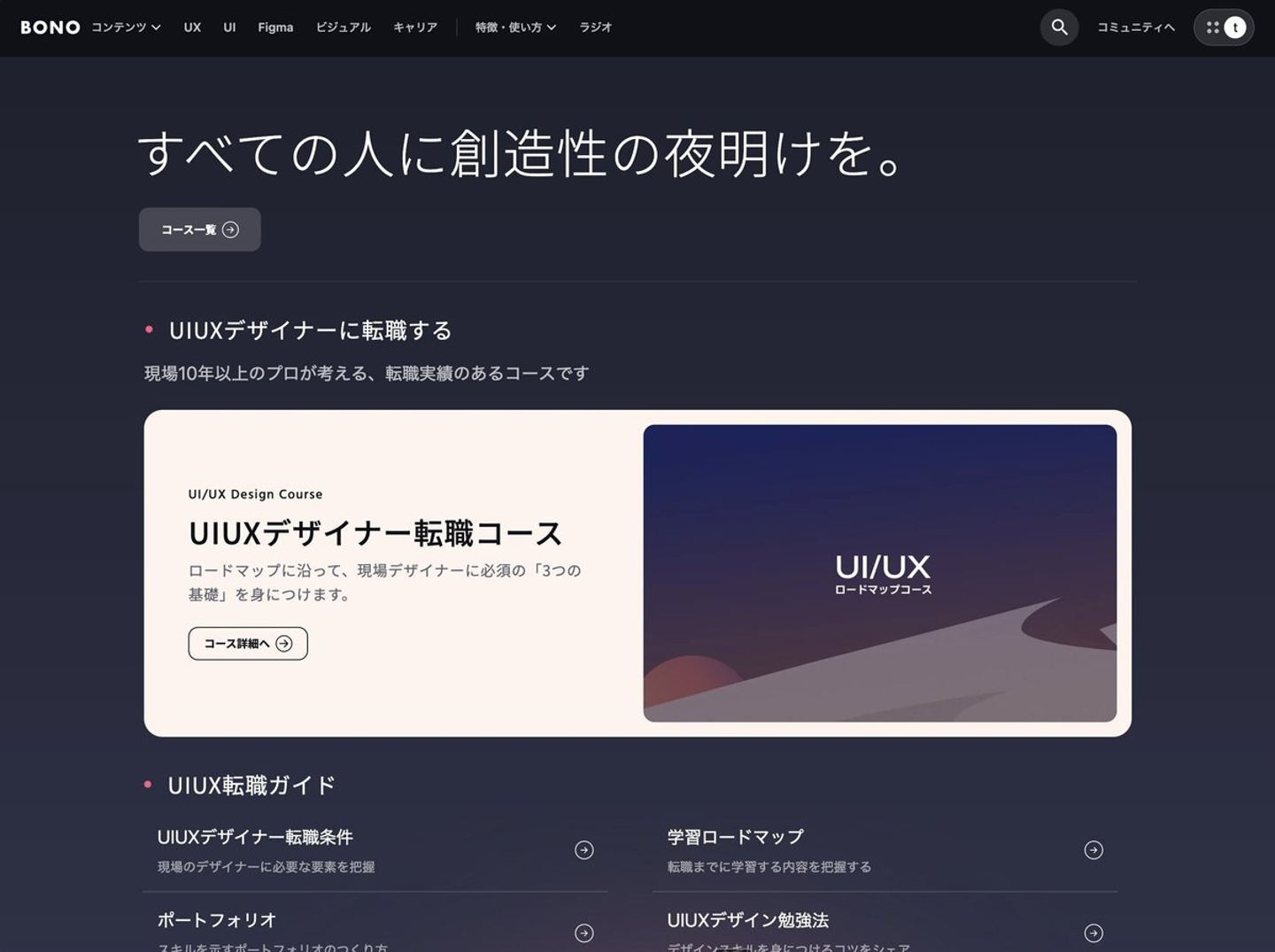 ありがとうございます。そのような経緯で始まったBONOの、今の全体コンセプトは「UI/UXデザイナーになりたい人向けコミュニティ」のイメージですか?