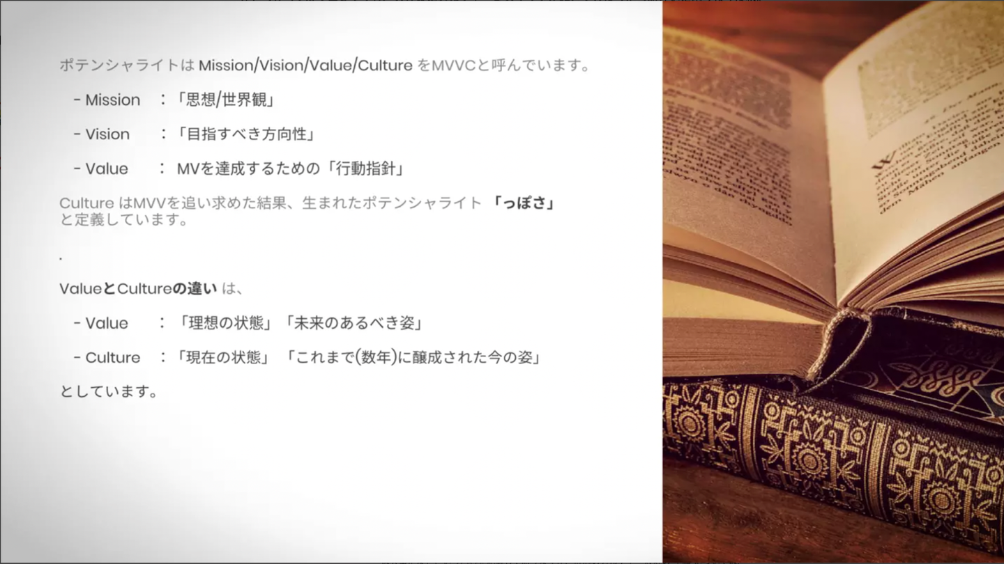 まず結論から言うと、ポテンシャライトのカルチャーの定義は下記です。