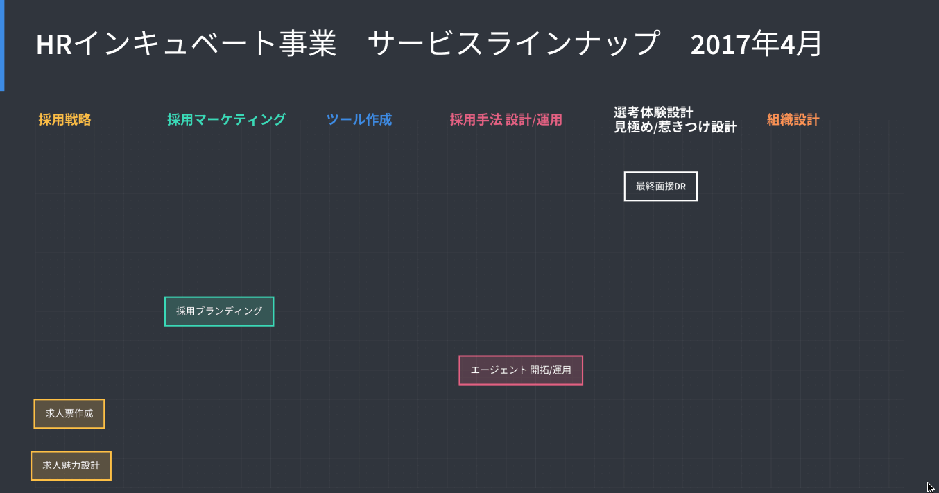 ただ、当社が相対する顧客は「ベンチャー企業」です。ベンチャー企業は1年も経過すれば社員数もフェーズもびっくりする位変わります。つまり、HRにおけるニーズは大きく変化し、その都度僕らも提供するサービスを変化させる必要もあります。