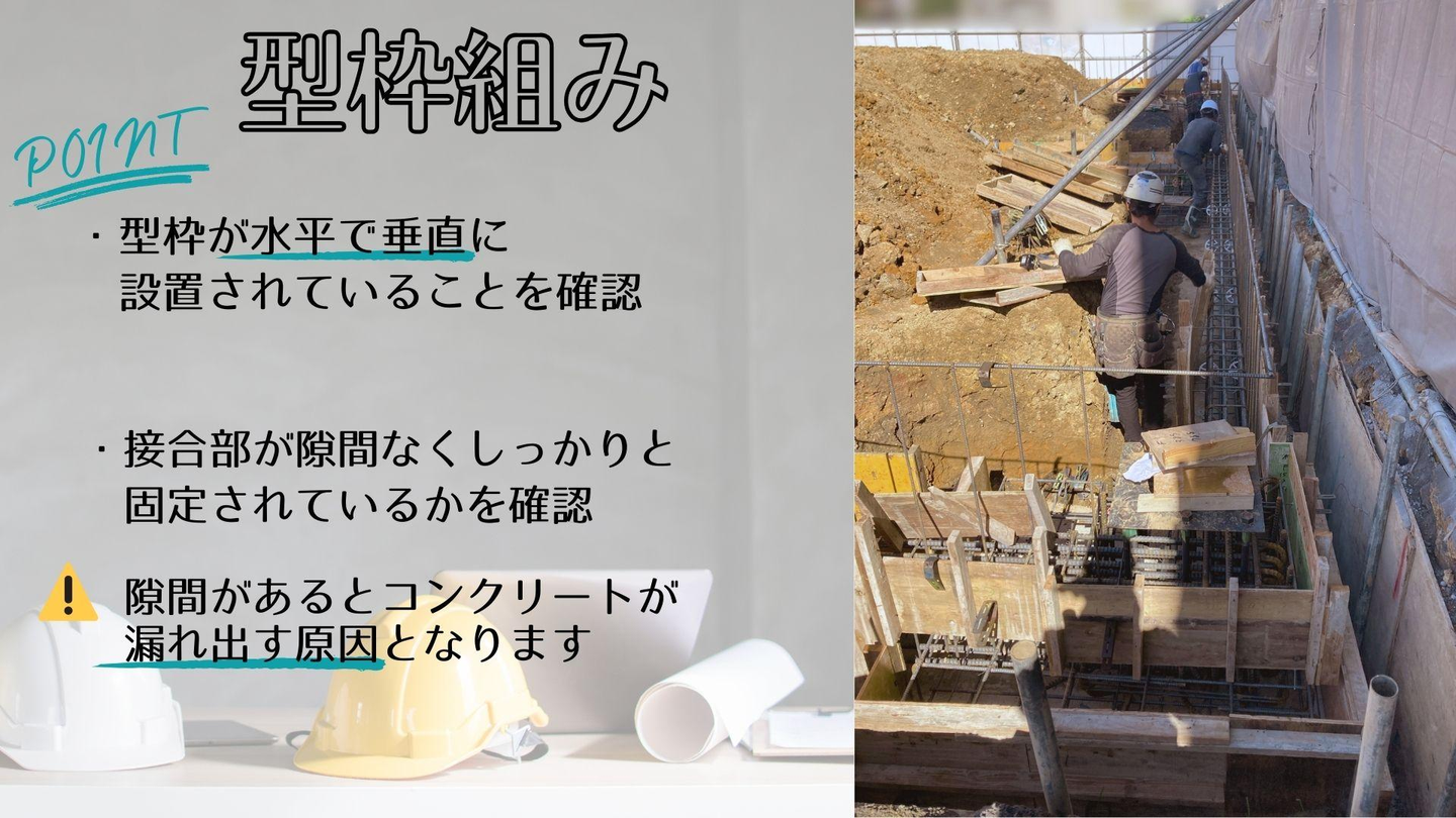 型枠とは基礎の部分になるコンクリートを流しこむための枠であり、基礎部分を正確な寸法で仕上げるための重要な役割を持ちます。
