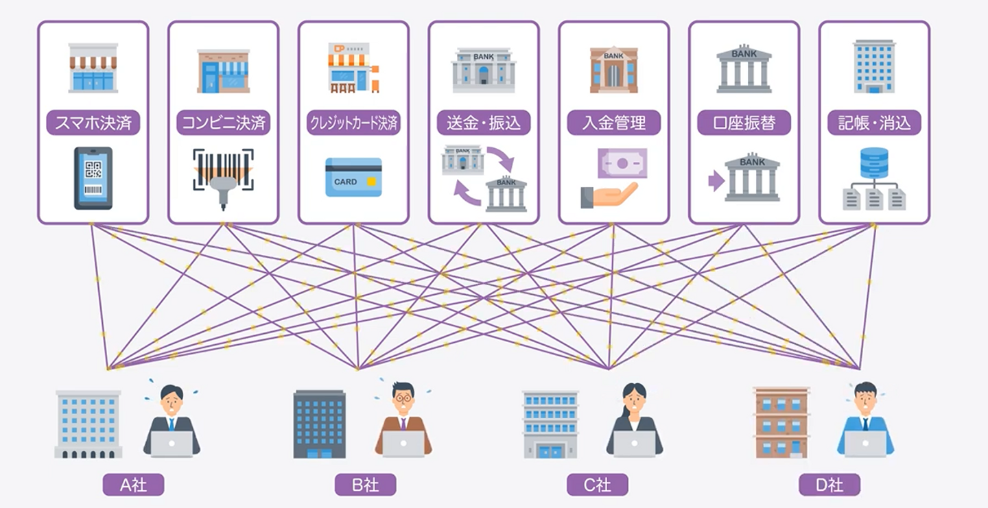 決済手段が様々で、金融機関はさまざまな決済手段への対応を強いられ、大きな会社負担となっていました。