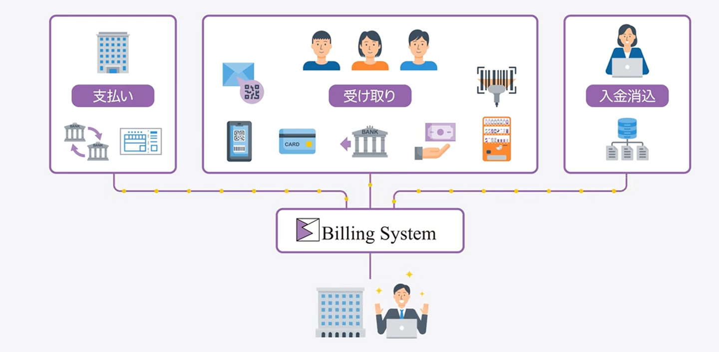 私たちは、企業の請求から入金管理、回収までを一気通貫で支援するクラウドサービスを提供しています。ひと言でいえば、「請求と決済を“業務”から“仕組み”に置き換える」お手伝いです。