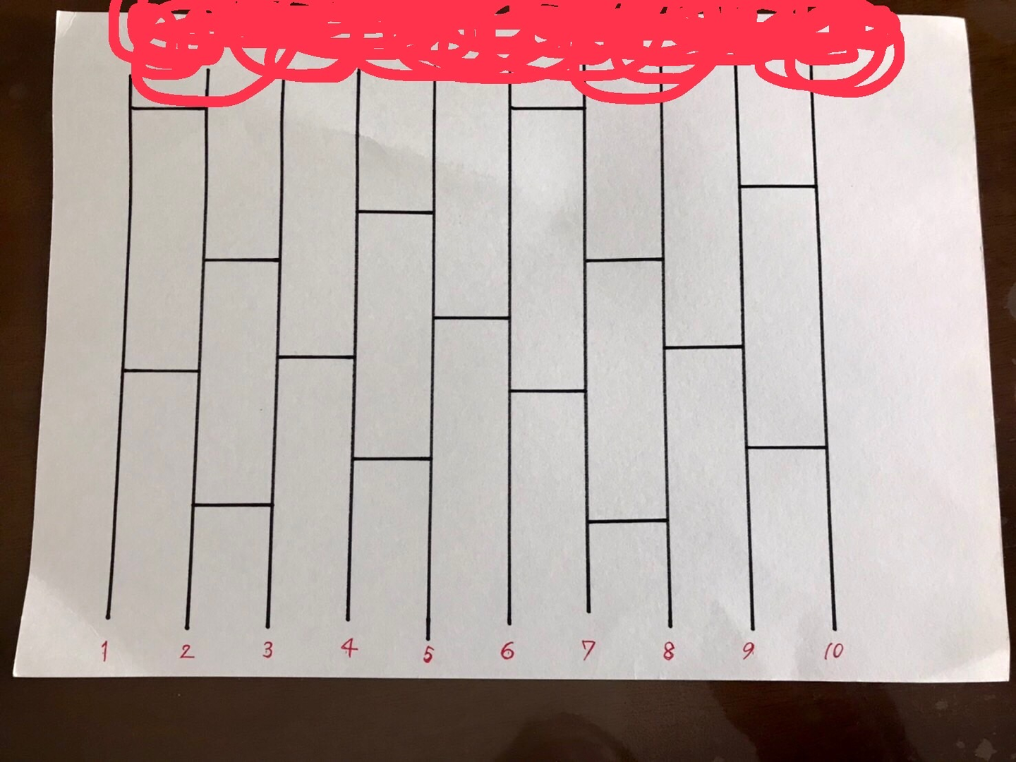 企画を盛り上げるため独自にあみだくじを作ってくれ、上に女性陣、下の番号は男性陣に振り当てて渡す相手を即興で決めました。