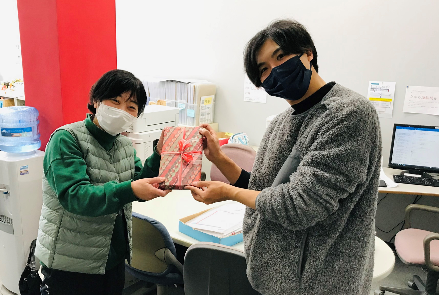 出社のタイミングで順次手渡し。