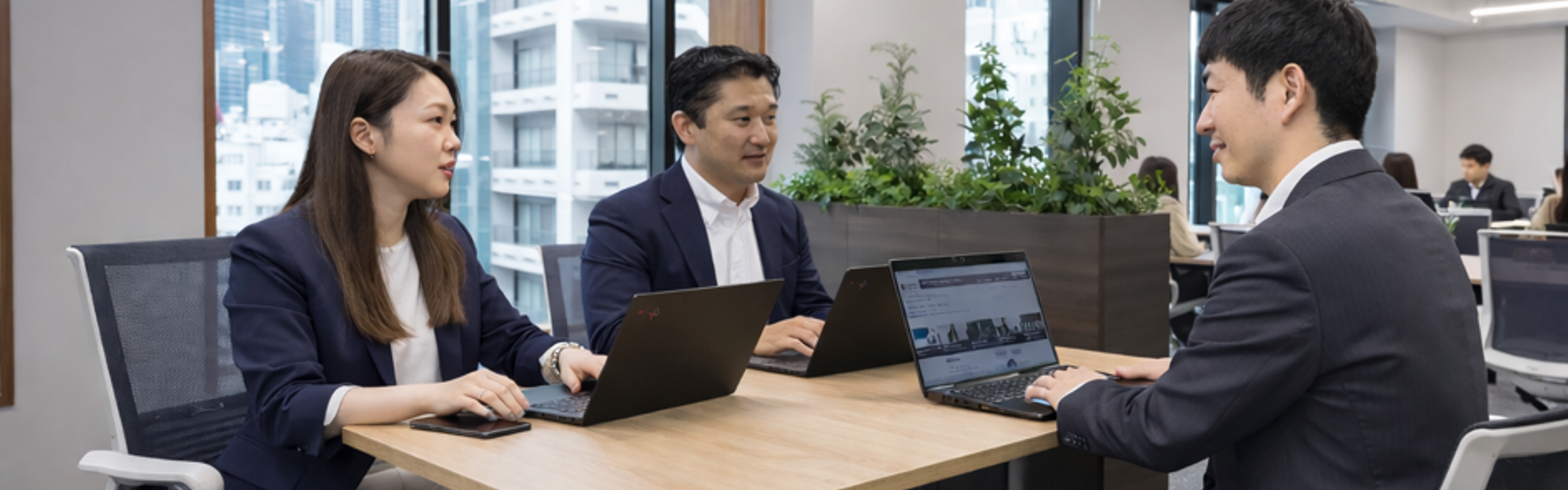 役職や年次よりも、提案の質と覚悟を重視する。若手でも経営テーマに意見を出し、クライアントの前に立つ。上下ではなく、目的に向かって並走する関係。遠慮より議論、忖度より本質。誰もが当事者として事業を動かします。
