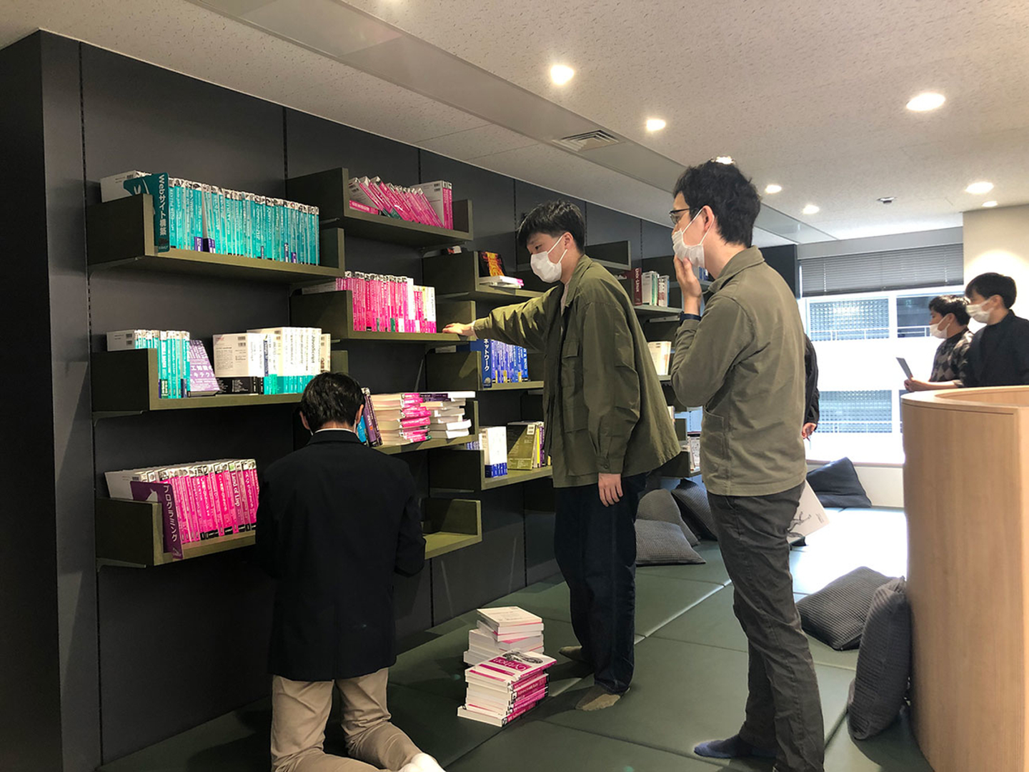 ライブラリースペースは土足禁止のソファーエリアのため、技術書片手に技術トークするなど、コミュケーションがとれる場になりそうですね。エンジニアにとって大切な好奇心をかきたて、学習し続けることで成長していくことを楽しみにしています。