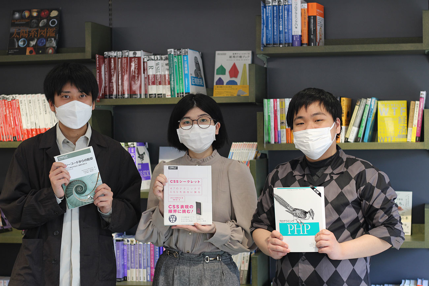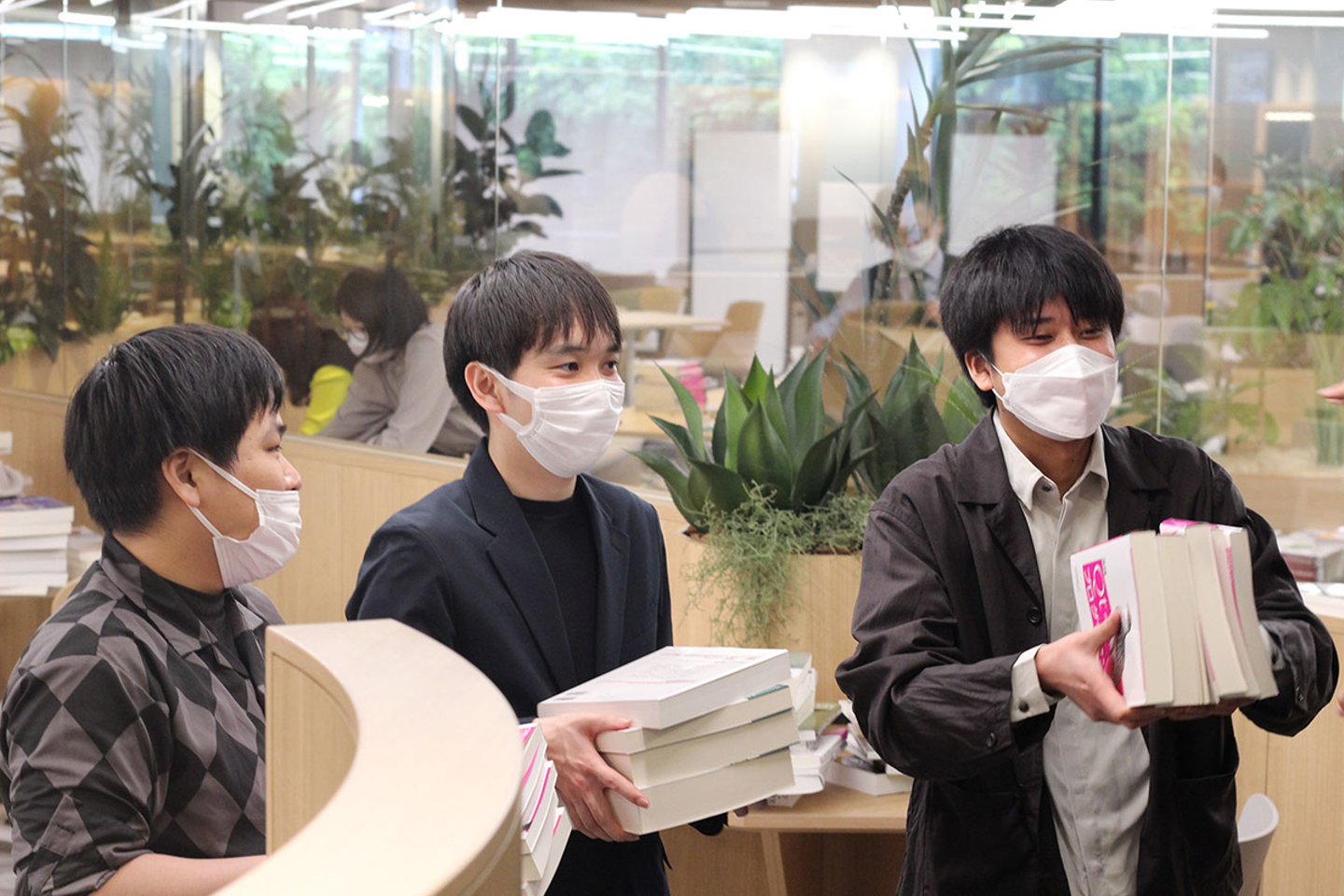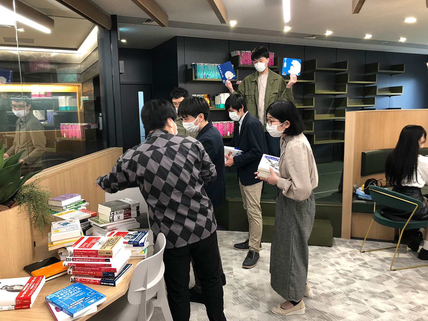 手伝ってもらったメンバーに、それぞれが興味を持っている分野の一冊を手にしてカシャリ。