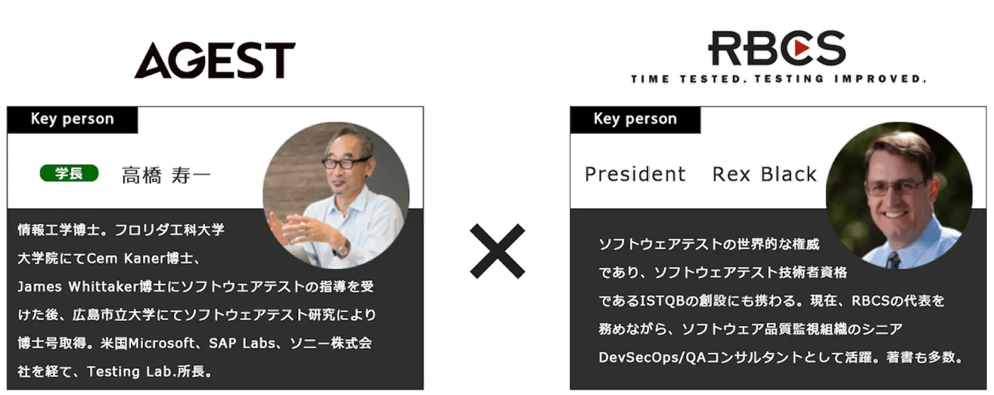そうした目的を果たすべく、ソフトウェアテストのトレーニング及びコンサルティングサービスを提供する米国企業Rex Black Consulting Services, Inc.(RBCS)と業務提携を行い、世界トップレベルのエンジニアたちとタッグを組んだ「AGEST Acsdemy」が誕生しました。