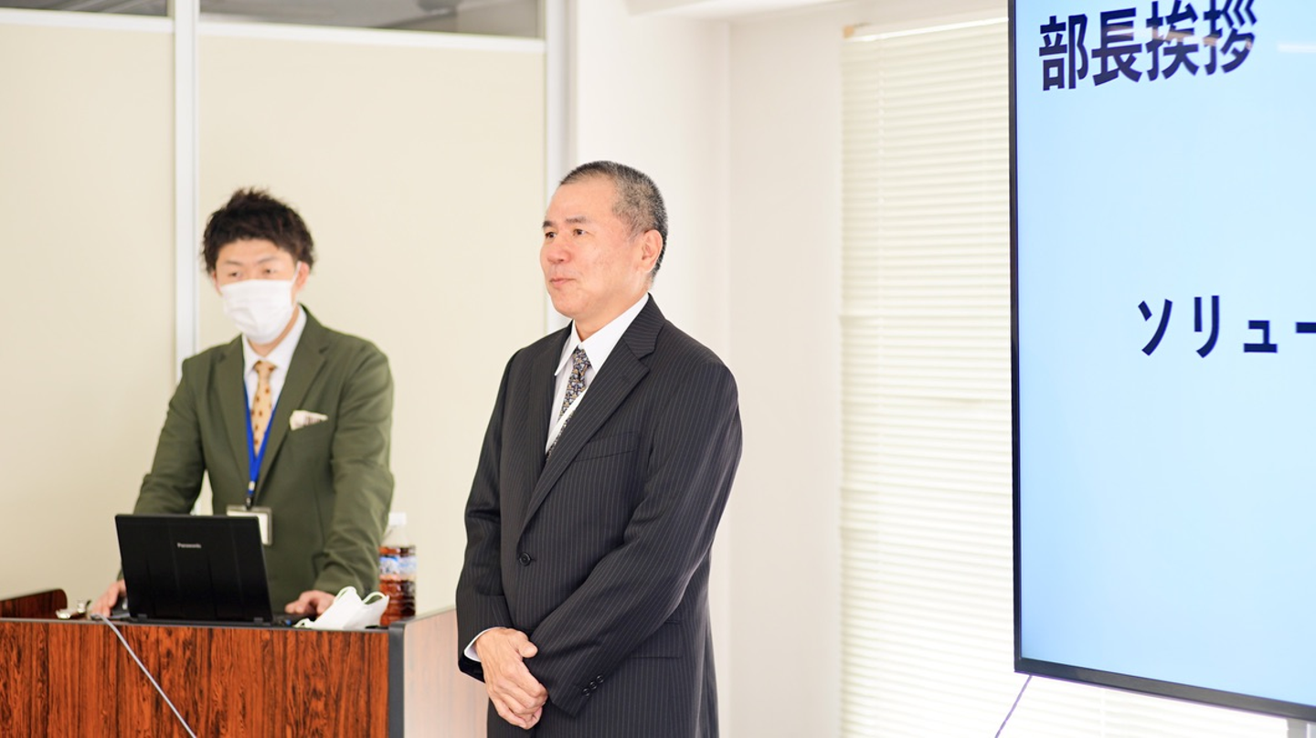 大阪事業所の村上部長の挨拶。お茶目な関西弁に緊張していた空気も和みます♪