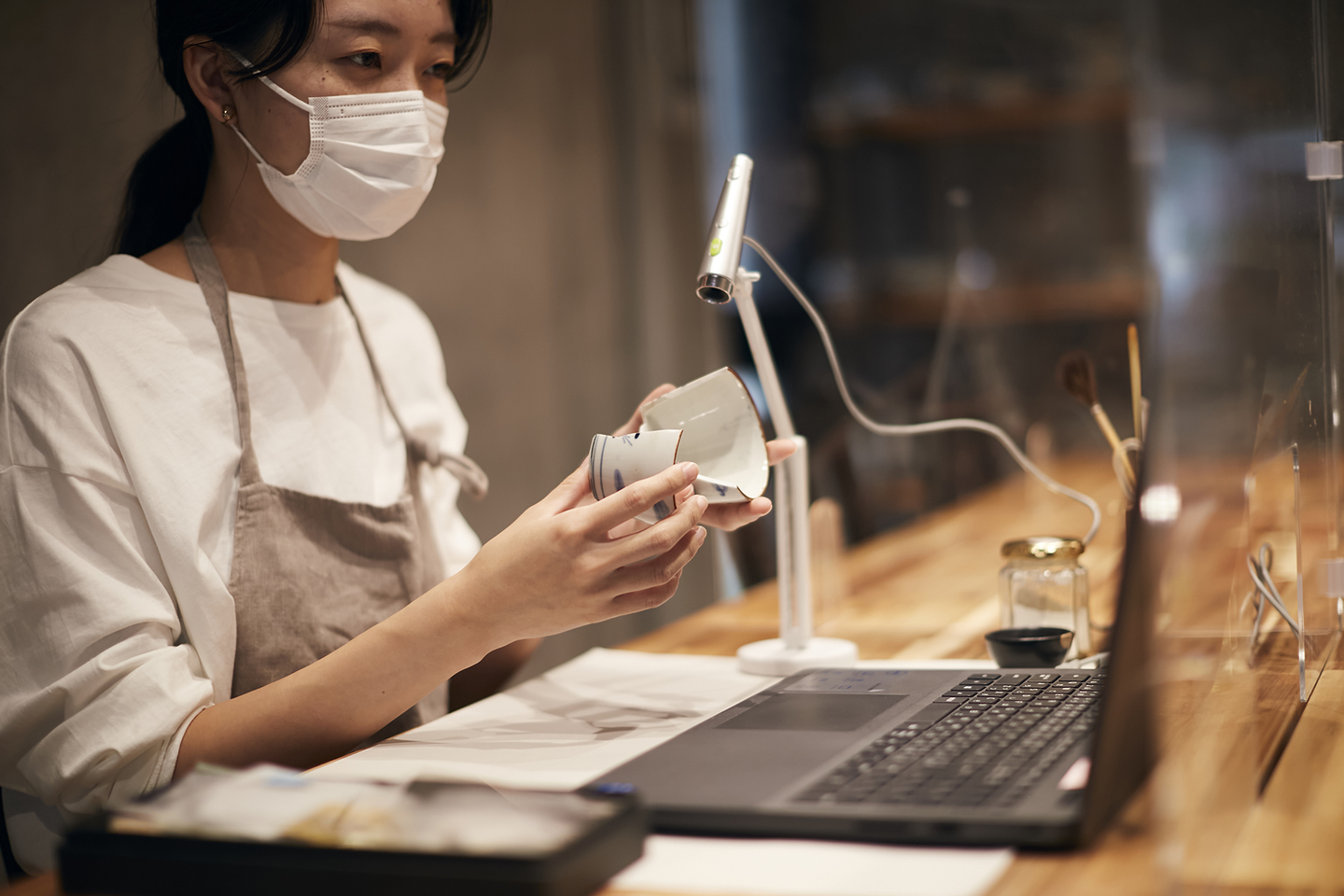 当時はオンライン教室も開催されており、Zoomを利用して、手元のカメラで実演しながら、個別に金継ぎのレッスンを行う練習もしました。