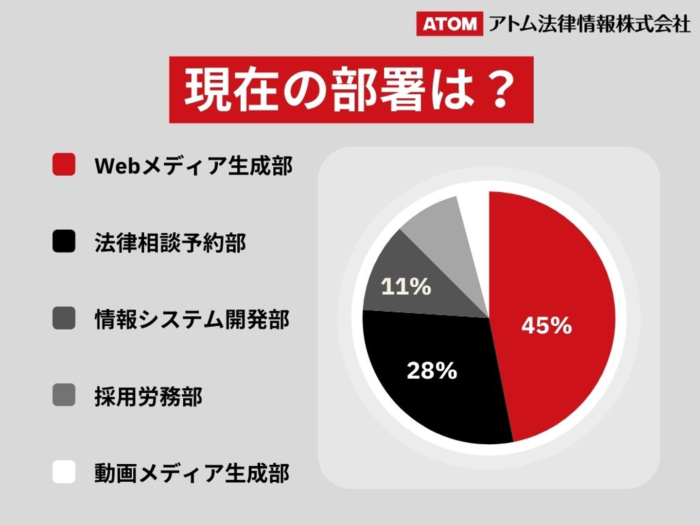 アトム法律事務所・アトム法律情報株式会社、グループ全体の情報システムに関する技術開発を担っています。アトム法律事務所のWebメディアのフロントエンドからバックエンドまでの開発と保守運用、メディアを生成するための情報抽出の技術開発、法律相談予約のツールをはじめとする社内システムの開発と運用など。アトムの全メンバーに対して、PCやスマホ、周辺機器やネットの購買・設定・トラブルシューティングを行うITサポート業務も行っています。