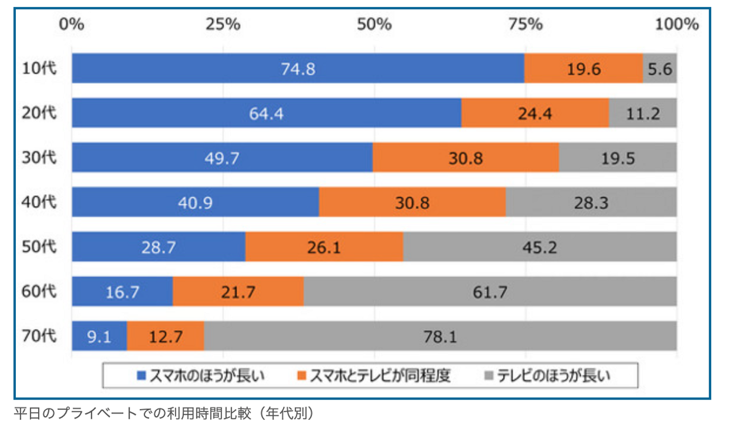 ※両グラフ「スマホとテレビの利用に関する分析結果(2022年2月」NTTドコモのモバイル社会研究所出典
