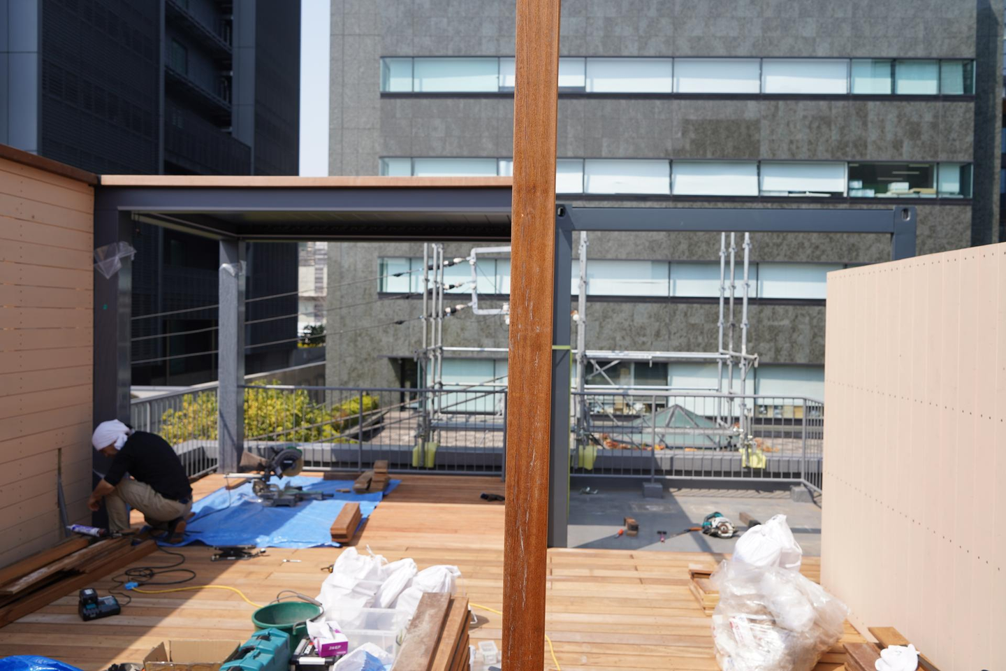 完成予定は4月末。ここはただの屋上ではなく、仕事の合間にリフレッシュできる憩いの場であり、社内イベントやBBQなども楽しめる特別な空間です!!
