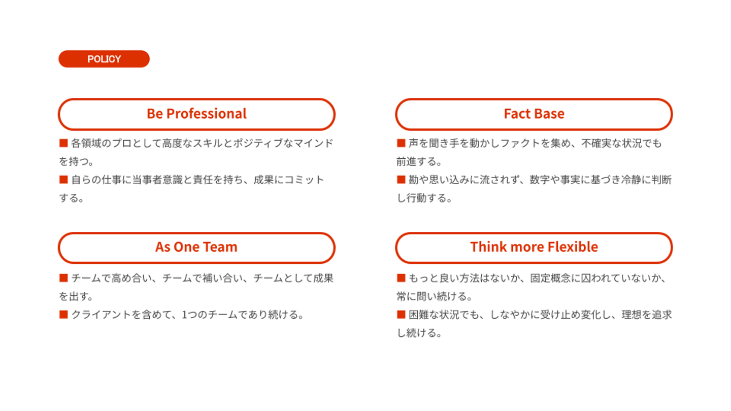 はい。中でも最も大切にしているコアポリシーが「Think more Flexible」です。