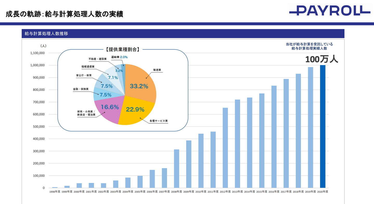 1997年より給与計算のフルアウトソーシング事業に移行し、