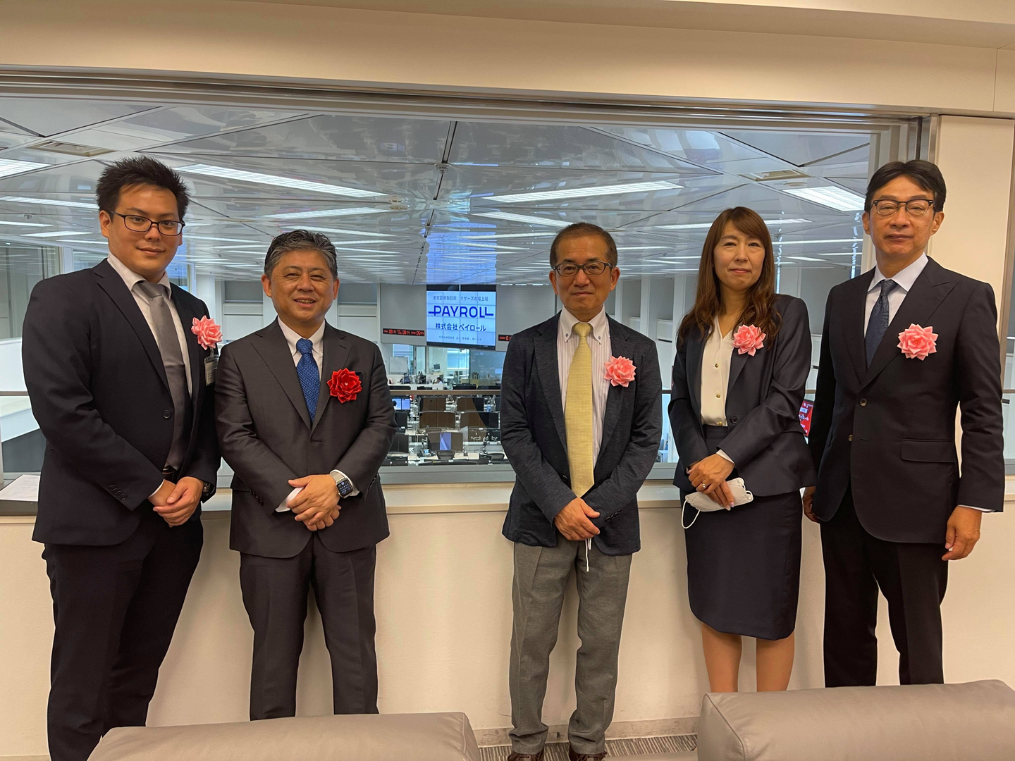また、東証で行われる上場セレモニーへは、代表取締役社長の湯浅さんを始め、会社を代表して5名が参加しました!