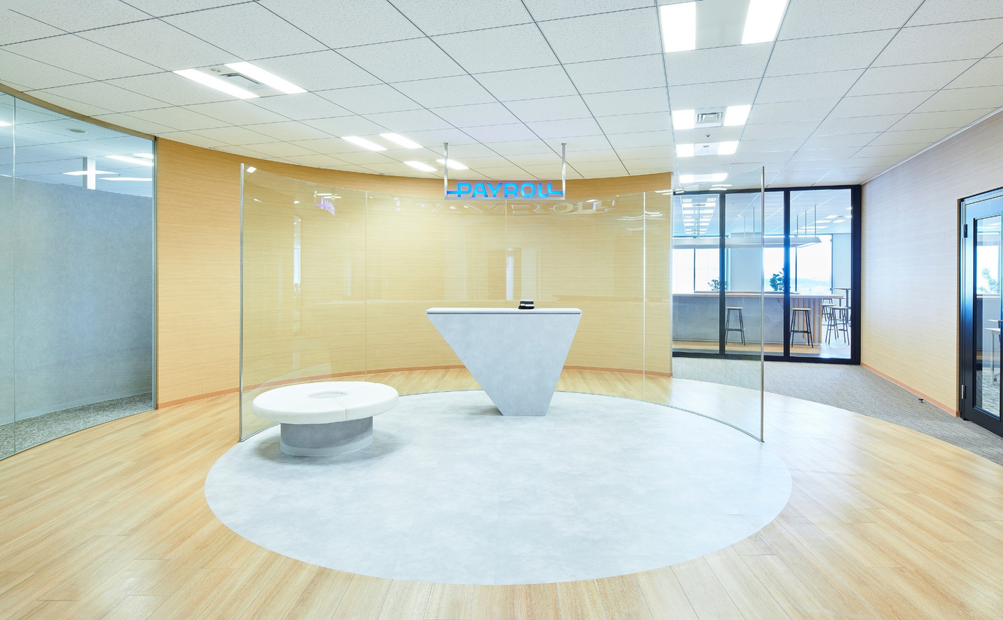 エントランス奥からをガラス越しに執務室の様子が見えるようになり、