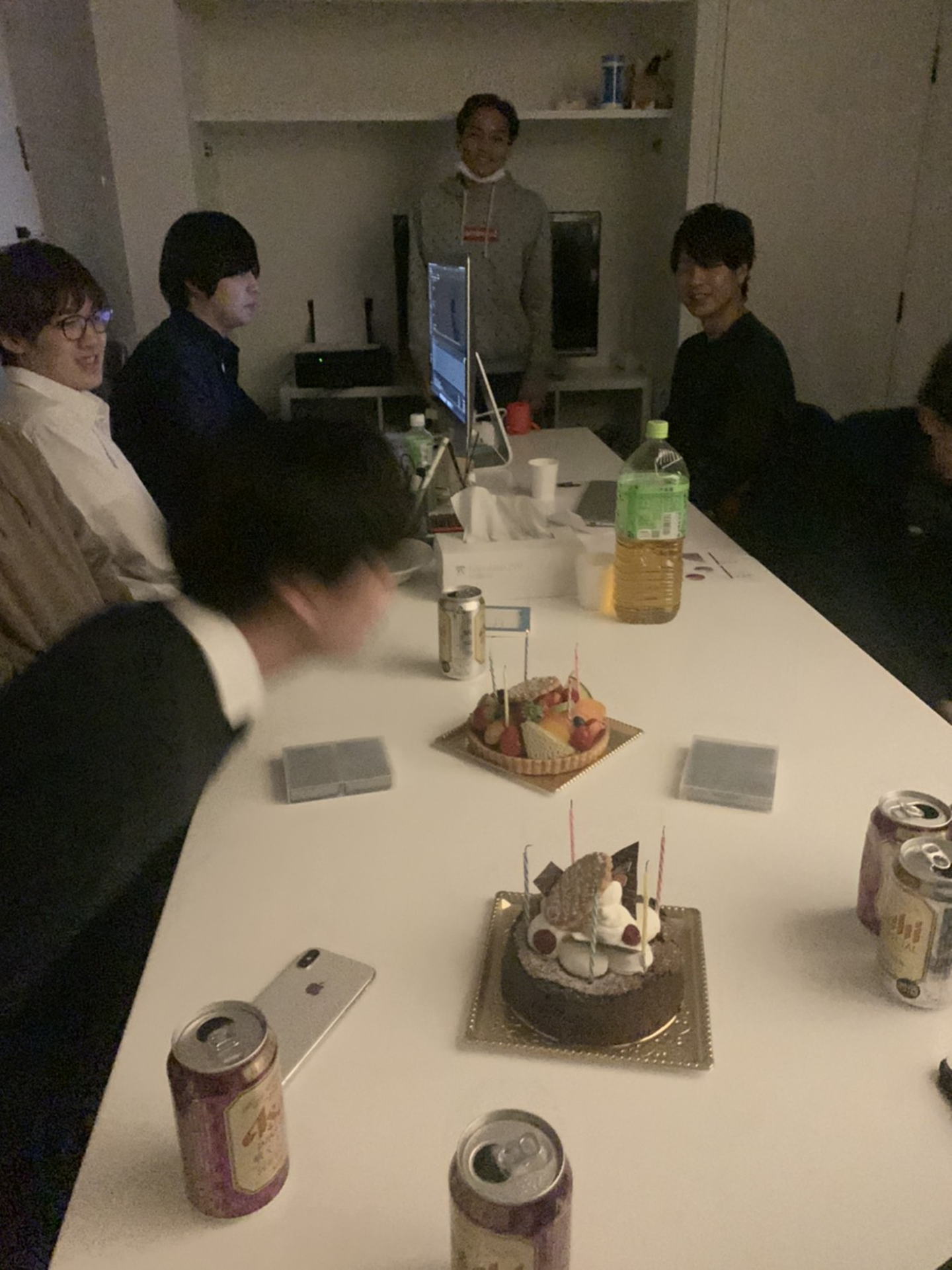 部屋の照明を暗くし、照れながらもお誕生日ソングを歌いながら誕生日ケーキを贈呈し、皆の明るい笑顔と共に(暗くてあんまり見えないですが・・・)全力で「お誕生日おめでとーー!!」と、お祝いしております🤗